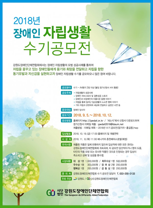 10. 문의처 : 강원도장애인단체연합회 수기 공모전 담당자 T. 033-255-2133