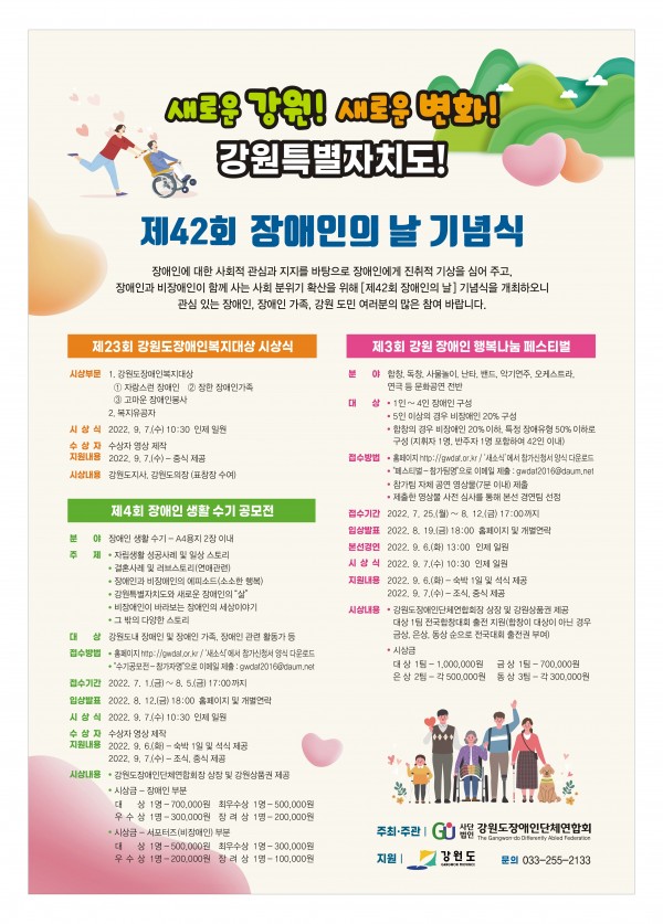 문 의 | (사)강원도장애인단체연합회 / ☎ 033-255-2133 |